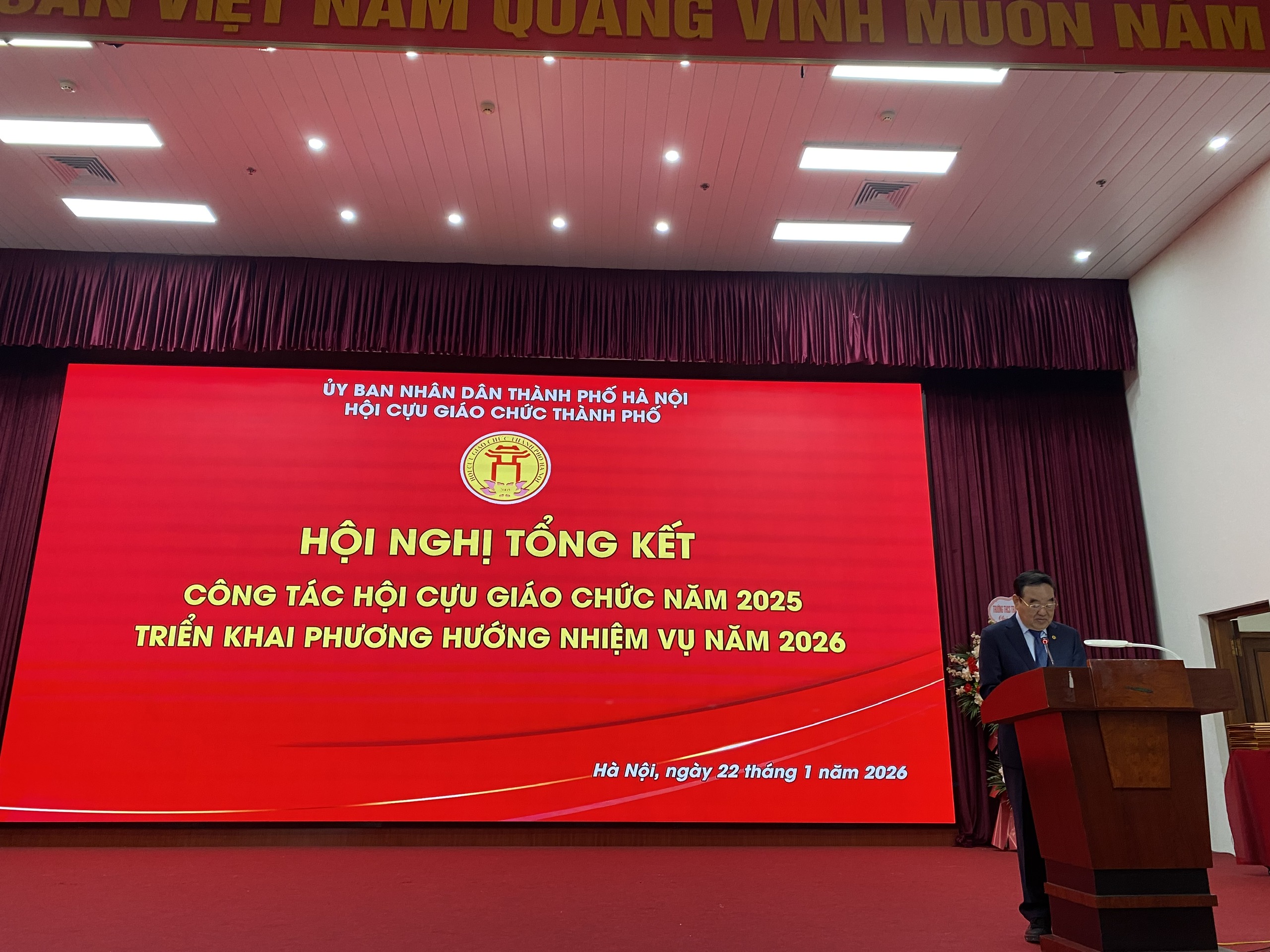 TCGCVN - Sáng 22/01/2026, tại Trường Bồi dưỡng Cán bộ Quản lý Giáo dục Hà Nội, Hội Cựu giáo chức (CGC) TP. Hà Nội đã tổ chức Hội nghị tổng kết công tác xây dựng và phát triển Hội năm 2025, triển khai phương hướng, nhiệm vụ năm 2026. PGS.TS. NGƯT Trần Quang Quý, đại diện Trung ương Hội CGC Việt Nam, đã có bài phát biểu quan trọng, đánh giá toàn diện kết quả đạt được, đồng thời định hướng những nhiệm vụ trọng tâm trong thời gian tới. Tham dự có PGS.TS Nguyễn Văn Hiền tân Giám đốc sở Giáo dục & Đào tạo thành phố Hà Nội tới dự cùng toàn thể BCH Hội CGC Tp. Hà Nội.