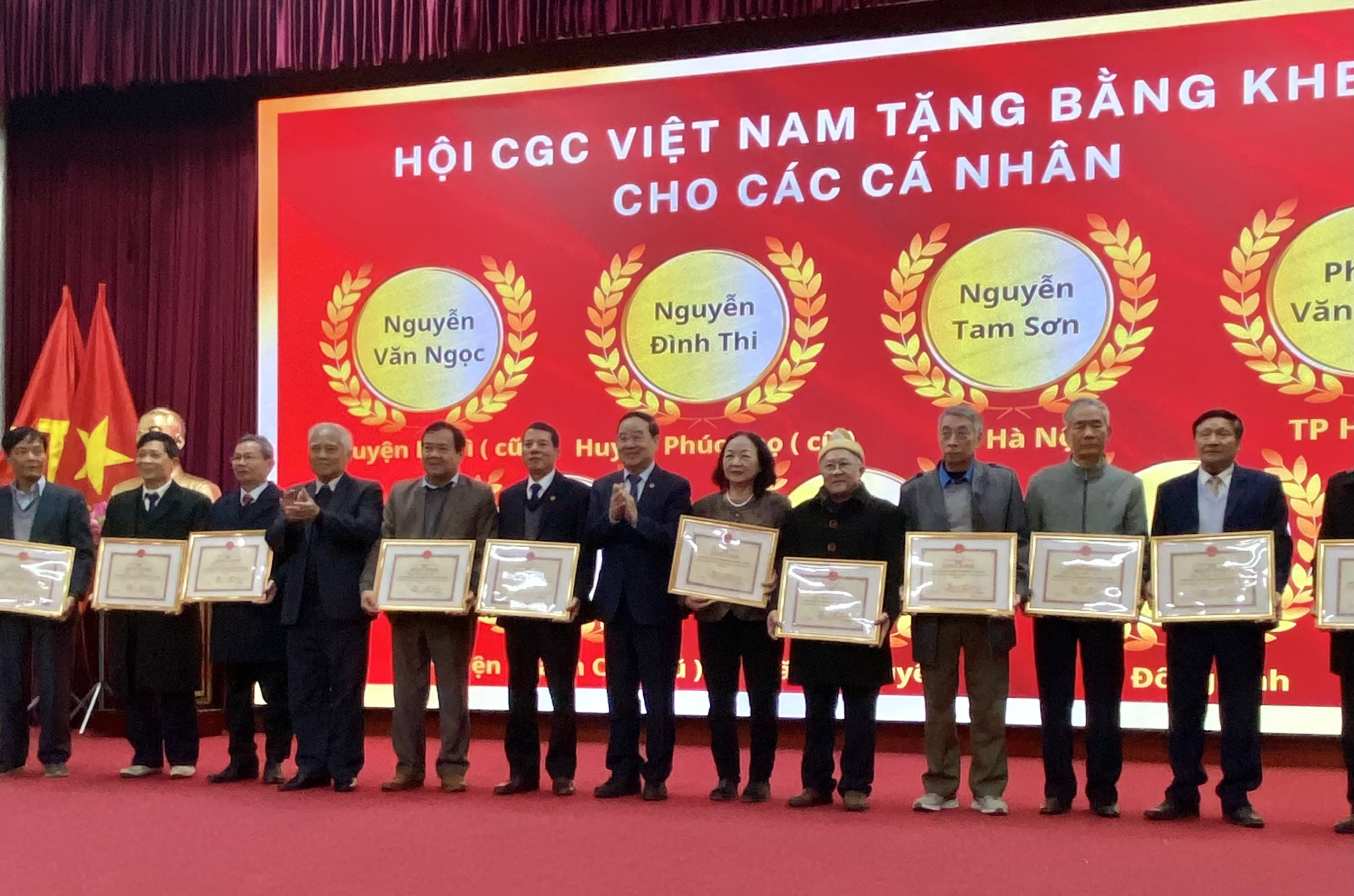 Chủ tịch Hội CGCVN Phó GS TS NGUT và Trần Quang Quý và PCT kiêm tổng thư ký Hội CGCVN NG Nguyễn Xuân Phương trao tặng Bằng khen của TƯ Hội CGCVN cho các tập thể và cá nhân của Hội CGC Tp. Hà Nội