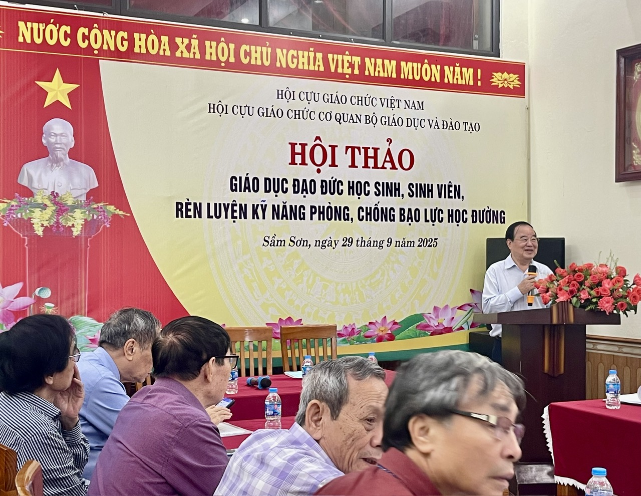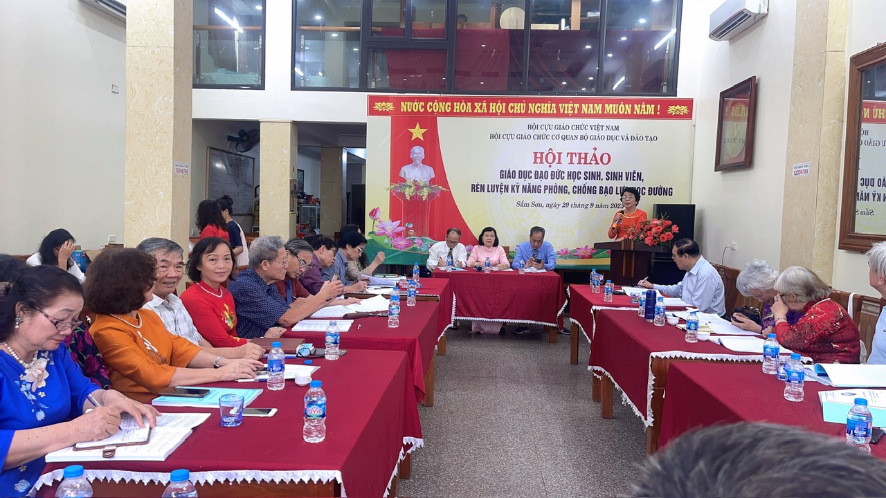 TCGCVN – Sáng 29/9/2025, tại thành phố Sầm Sơn (Thanh Hóa), Hội thảo khoa học với chủ đề “Giáo dục đạo đức học sinh, sinh viên – Rèn luyện kỹ năng phòng, chống bạo lực học đường” đã được long trọng tổ chức. Hội thảo do Hội Cựu giáo chức cơ quan Bộ GD&ĐT phối hợp với Cục Nhà giáo và Cán bộ quản lý giáo dục cùng các đơn vị chức năng thuộc Bộ Giáo dục và Đào tạo tổ chức, theo Quyết định số 1394/QĐ-BGDĐT ngày 23/5/2025.