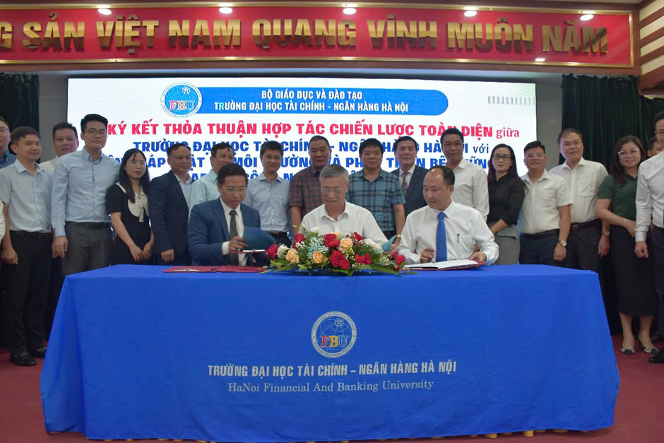 - Về phía Trường Đại học Tài chính – Ngân hàng Hà Nội có PGS.TSKH. Bùi Xuân Biên – Chủ tịch HĐT; Phó GS. TS NGUT Phạm Ngọc Ánh – Hiệu trưởng nhà trường; TS. Trương Hồng Hải - Bí thư ĐU, Phó Hiệu trưởng nhà trường; Dự Lễ ký kết hôm nay còn có Lãnh đạo các đơn vị, cùng các thầy cô giáo.