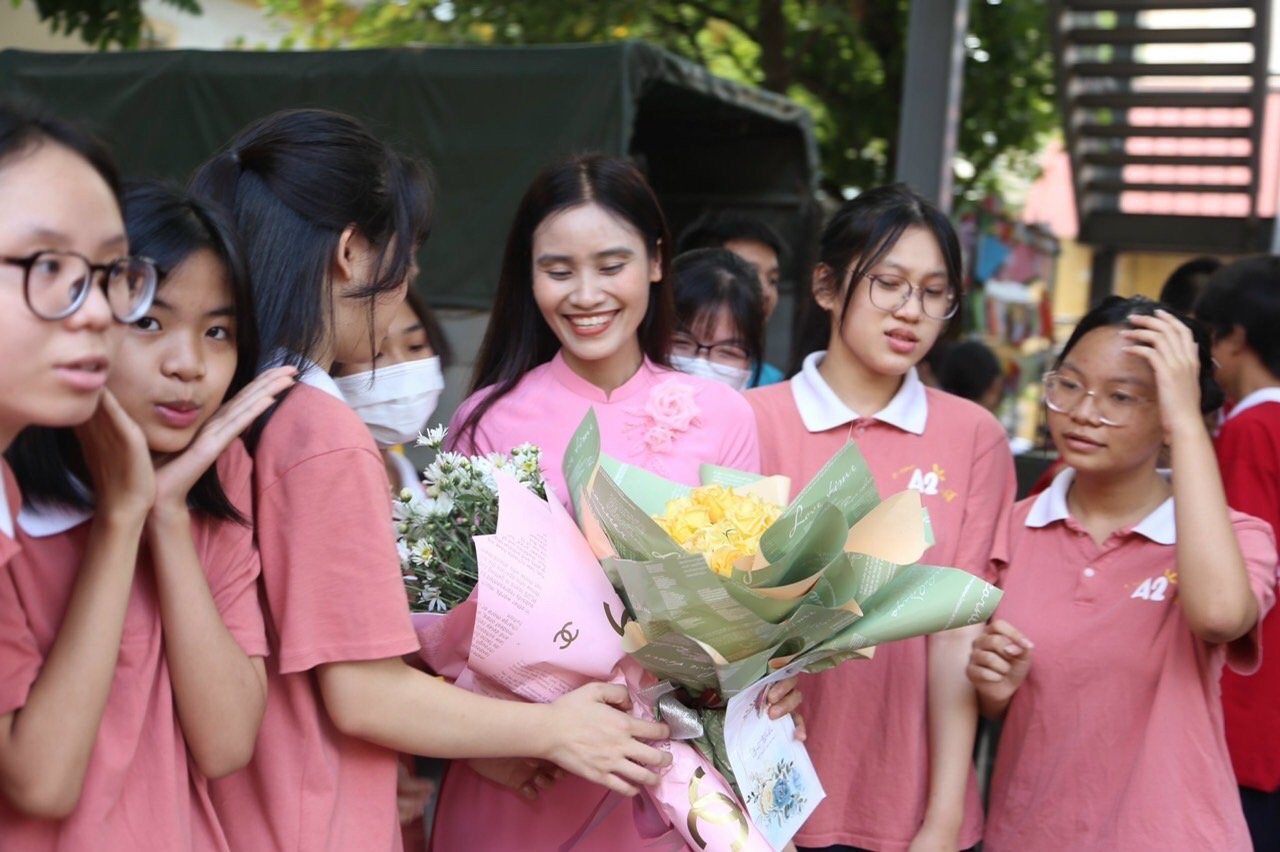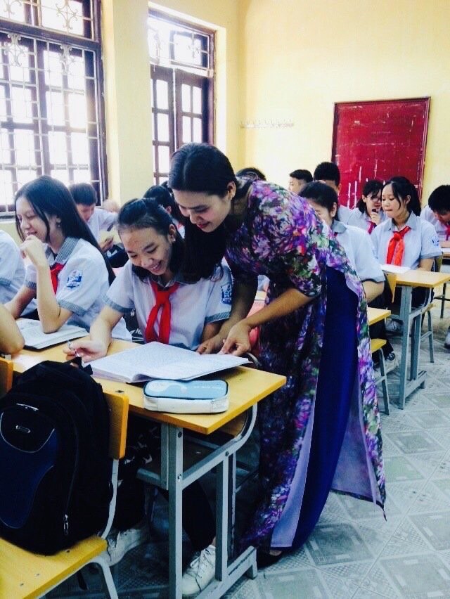 Nụ cười hạnh phúc của cô giáo Nguyễn Kim Cương bên học trò