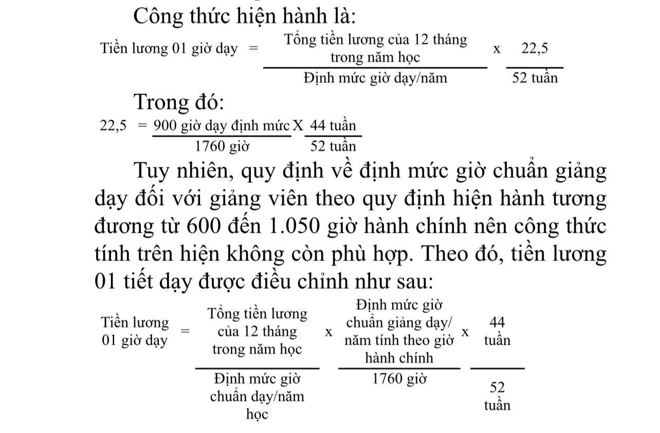 - Điều chỉnh cách tính tiền lương 1 giờ dạy cho phù hợp quy định hiện hành về định mức giờ chuẩn giảng dạy.