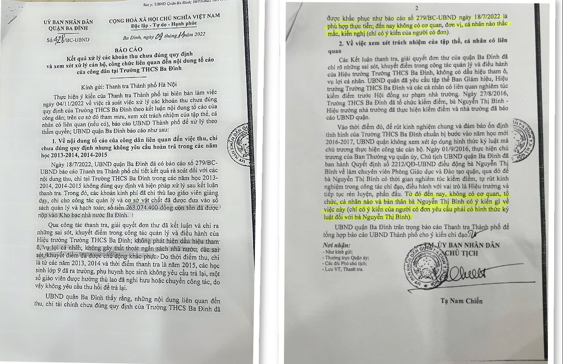 (báo cáo 428/BC-UBND là một trong những minh chứng: bà Bình không vụ lợi cá nhân )